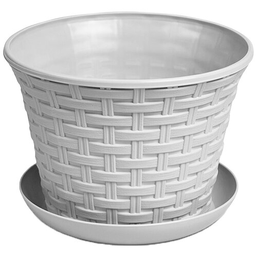 Кашпо Ротанг круглое с поддоном 2,1л / горшок для цветов / горшок цветочный, цвет светло-серый