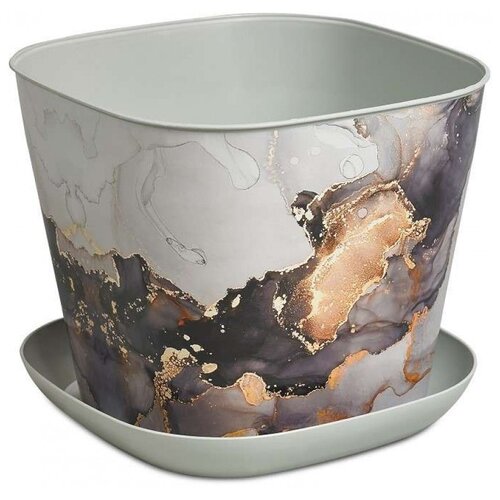 Кашпо Мрамор квадратное с поддоном 5,0л / горшок для цветов / горшок цветочный серый, золотистый, белый, светлый, серый