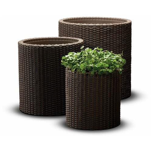 Цилиндрическое кашпо из пластика под ротанг напольное 3 шт