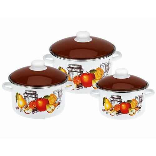 Набор эмалированной посуды, Рябинка, 6 предметов (3 кастрюли с крышками)