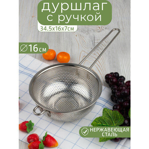 Дуршлаг с ручкой 34.5х16х7 см, нержавеющая сталь