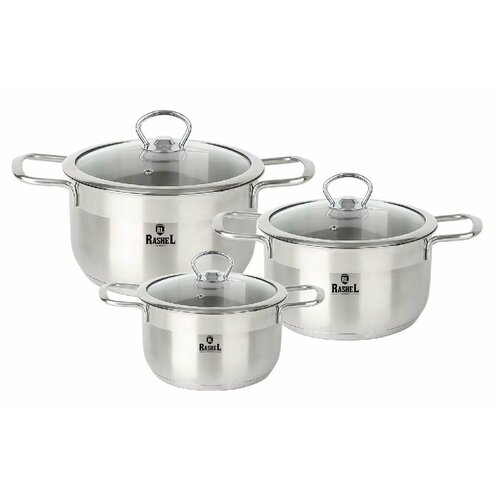 Набор посуды RASHEL R-234 6 предметов из нержавеющей стали со стекл. кр. (2л, 3л, 4л)