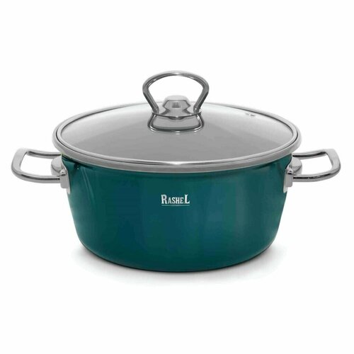 Кастрюля эмалированная сталь, 3.5 л, с крышкой, крышка стекло, ручки хром, RasheL, R4022, зеленая, индукция
