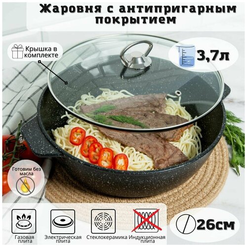 Жаровня из литого аллюминия антипригарная DARIIS "Мечта хозяйки" 3,7 л с крышкой (26 см)