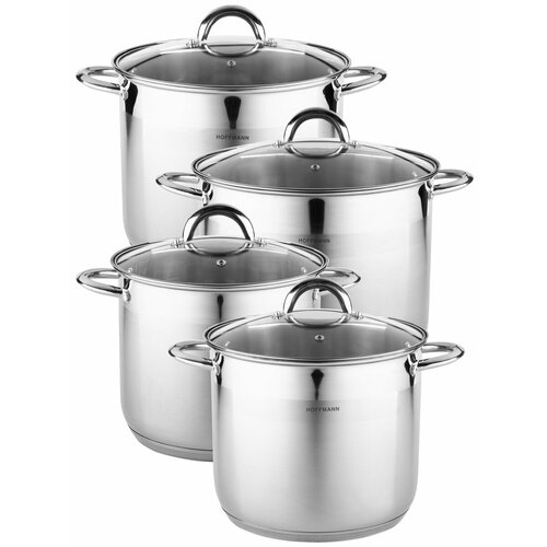 Набор кастрюль Hoffmann 5225 из нержавеющей стали, набор посуды из нержавеющей стали, 6 предметов, 7.4 л, 5.1 л, 3.1 л