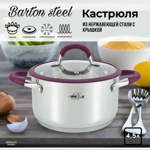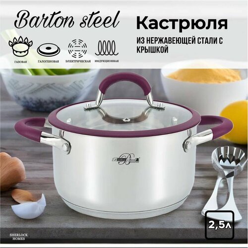 Цены на Кастрюля нержавеющая сталь со стеклянной крышкой 1,8 л / все типы плит, включая индукционные / BartonSteel серебристый, фиолетовый в г. Москва
