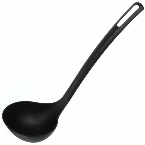 Ложка поварская кухонная, силикон, стальная ручка, навеска, черная, Daniks, Stark, YW-KT258-7