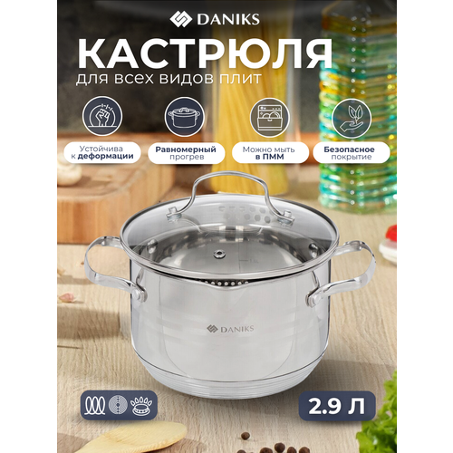 Цены на Кастрюля нержавеющая сталь, 2.9 л, с крышкой, крышка стекло, Daniks, Нара, GS-01413HY-18CA-2, серебряная, индукция серебристый в г. Москва