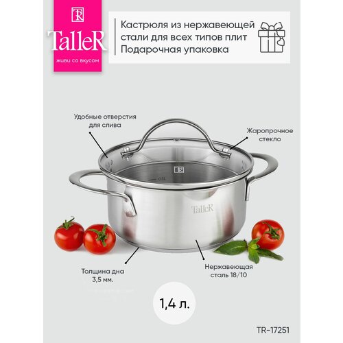 Кастрюля 2,2 л Долорес Taller, для всех типов плит, нержавеющая сталь