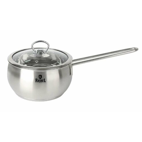 Кастрюля RASHEL R-19т со стеклянной крышкой 1.9л, нержавеющая сталь, 16х9.5 см