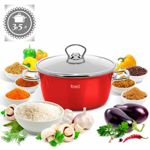 Кастрюля эмалированная 3,5 л с крышкой 22 см Rashel для газовых, электрических и индукционных плит, эмаль, посуда для индукции эмалированная сталь