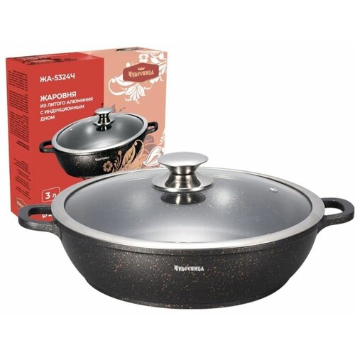 Жаровня чудесница ЖА-5324С литой алюминий обьем-3литра размер-24х7,5см стекло крышка
