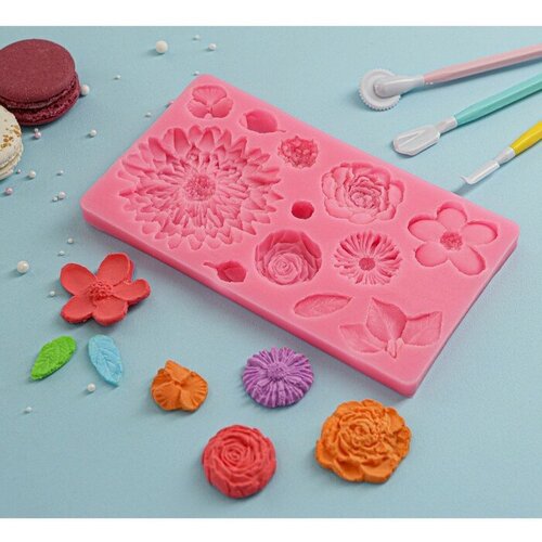 Силиконовый молд профессиональный «Цветы», 25×10 см