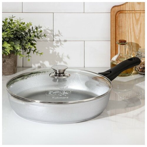 KUKMARA Сковорода, d=28 см, h=65 мм, съёмная ручка, стеклянная крышка, цвет хромированный