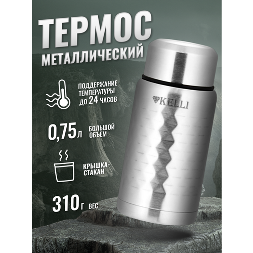 Термос Kelli KL-0910, с универс. пробкой, 0,75л, в комплекте с чашкой