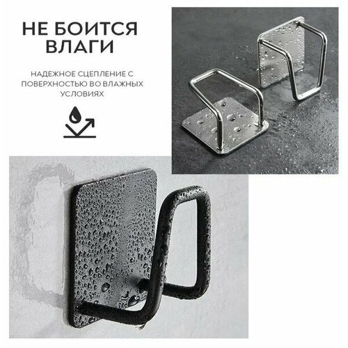 Крючок металлический самоклеящийся, держатель, вешалка для губки кухонной над раковиной / Крючок на липучке влагостойкий, сверхпрочный 2 шт