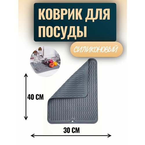 Коврик для сушки посуды / Сушилка для посуды / силиконовый коврик/ Темно серый