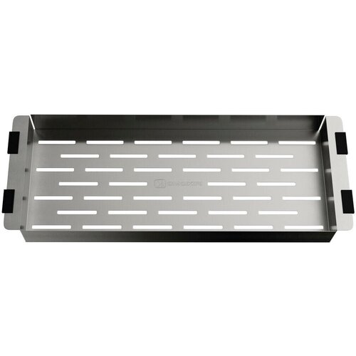 На дне коландера расположены небольшие отверстия, что позволяет удобно использовать его для размораживания продуктов, сушки столовых приборов, для сливания воды после отваривания продуктов и промывания фруктов и овощей. Подходит к мойкам Yonaka, Daisen, Sumi с размером чаши от 435 мм.