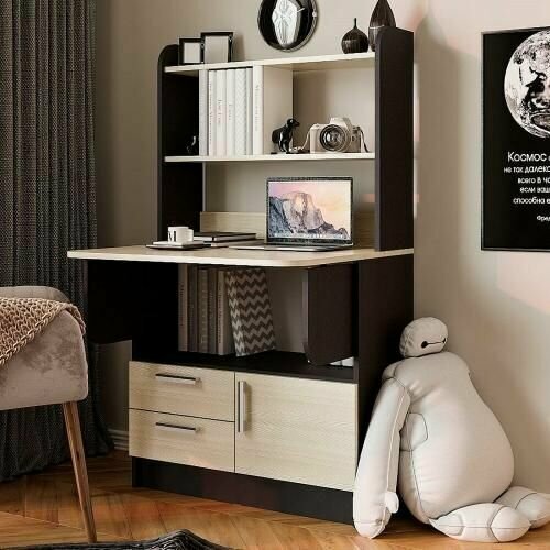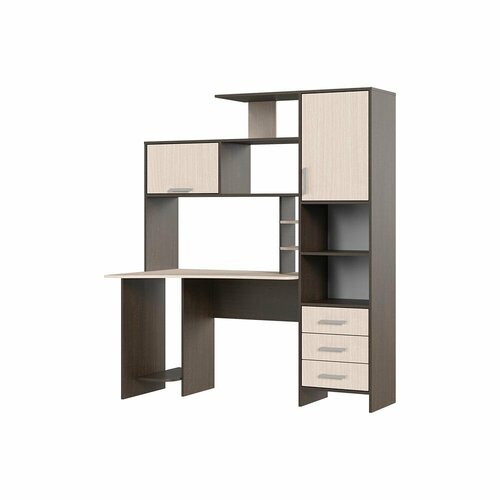 Стол компьютерный Квартет-10, ЛДСП, Венге, Дуб Сонома, 112x188x60 см, 3 ящика, 4 полки.