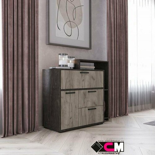 В): 1502х958х460 Корпус: ЛДСП - дуб крафт золото Фасад: ЛДСП - Белый Шагрень Комод Хелен КМ 06 – замечательная м...