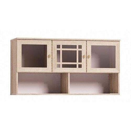 Полка книжная КН-01, цвет венге/дуб, ШхГхВ 83х25х30 см, стеклянные дверцы (ДВА цвета венге и дуб)