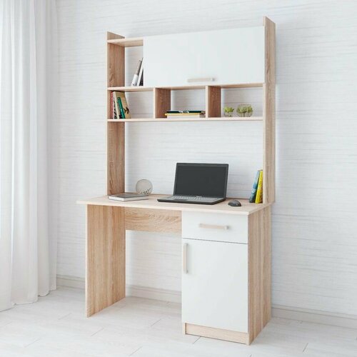 Стол компьютерный Квартет-10, ЛДСП, Дуб Сонома, Белый, 188х111,8х60 см.