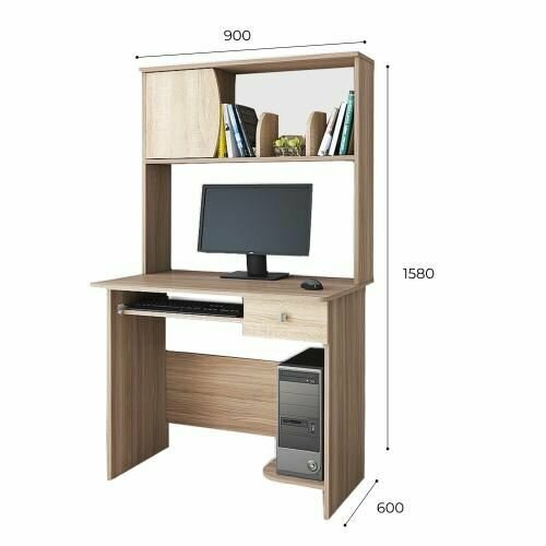 Стол компьютерный Грета-4, ЛДСП, 90x158x60 см, 1 ящик, 2 полки.