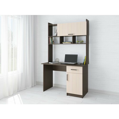 Стол письменный с надстройкой Рокки, ЛДСП, Венге, Лоредо, 80х140х37,2 см, 3 ящика, 2 полки.