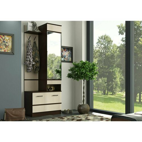 Прихожая BTS Британика Дуб Атланта / Дуб брашированный / Бежевый, экокожа