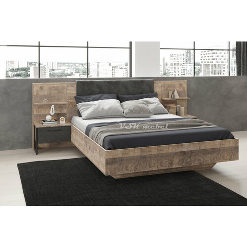 Мебель для спальни, спальный гарнитур HUGO, Дуб Грандж, спальное место 160х200 см, (ШхВхГ) 216,1х101,9х208,2