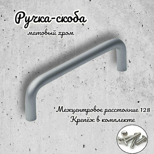 Ручка мебельная скоба, 128мм/163мм, цвет хром матовый, комплект 3 шт