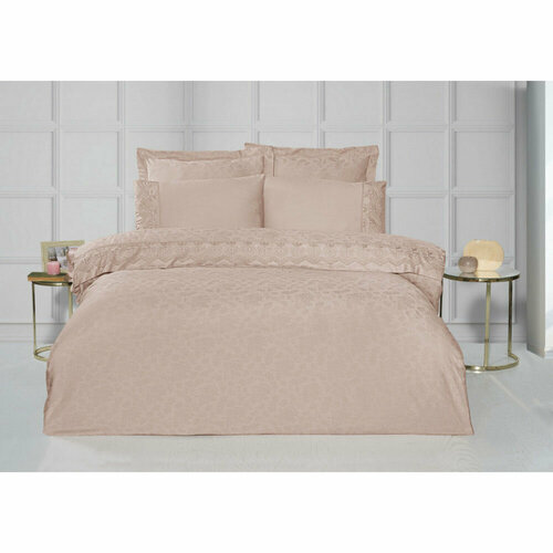 Постельное белье из сатин-жаккарда с кружевом J2-V4 Karven (пудра), Евро (наволочки 50x70)