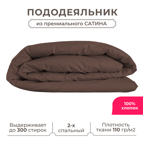 Двуспальный пододеяльник Lisleep 175х215, сатин (хлопок) с прорезью, шоколадный