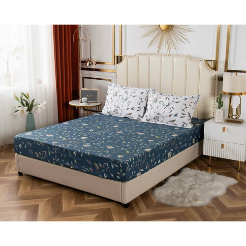 Постельное белье сатин Milky Garden "Каролина" 2-спальное, сатин, хлопок 100%, наволочки 2шт, простынь на резинке