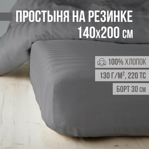 Простыня на резинке, натяжная, страйп-сатин VENTURA LIFE 140х200х30 см, Серый