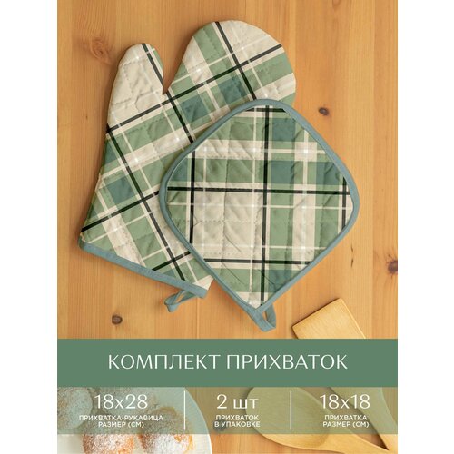 Комплект кухонный рогожка (прихватка 18х18, прихватка-рукавица 18х28) "Унисон" рис 33159-4 Fern