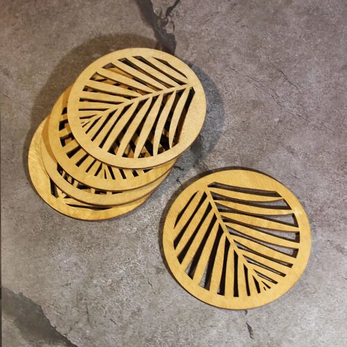 Комплект подставок под горячее, кружку, стакан, свечу - "Лист", 11,5 см х 11,5 см, 5 шт, из натурального дерева.
