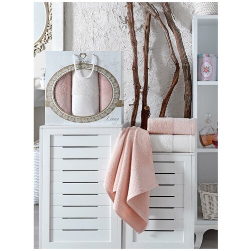 Комплект полотенец TWO DOLPHINS махра в коробке(50x90/2)(70х140/1) 3 шт. CEMRE, пудра ; Набор из 2 штук