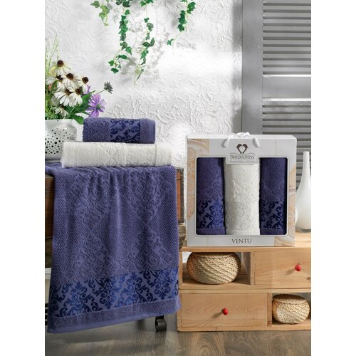 Комплект полотенец TWO DOLPHINS махра в коробке(50x90/2)(70х140/1) 3 шт. CEMRE, кремовый ; Набор из 2 штук