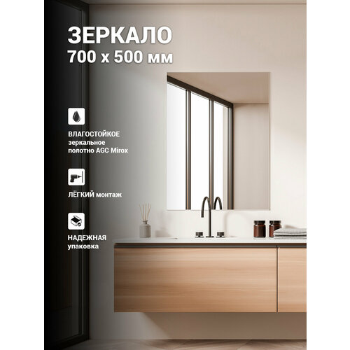 Зеркало Дом Стекла 21 "Пронт", 70x50 см, прямоугольное, без рамы, серебристое