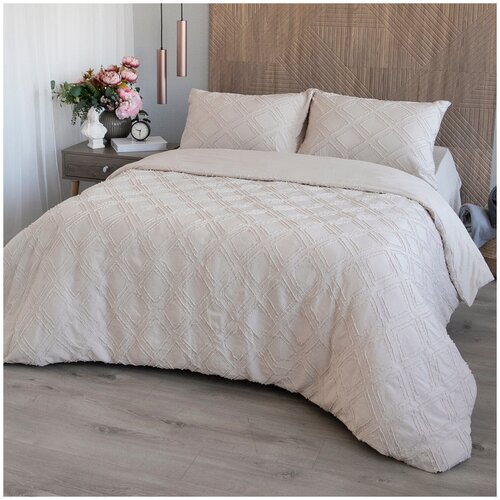 Комплект постельного белья 2-спальный с европростыней, жатка полисатин, песочный