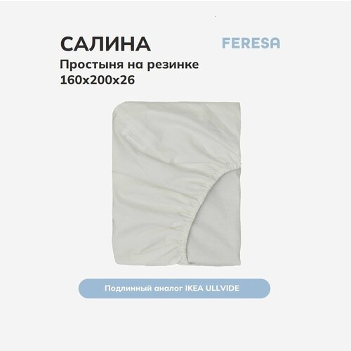 Простынь на резинке 160х200 см, поплин, Feresa Hygge салина/ULLVIDE, аналог икеа
