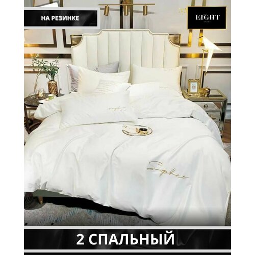 Комплект постельного белья MENCY WINNI Жатка Белый, 2 спальное с простыней на резинке