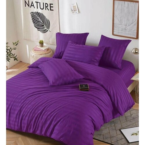 Комплект 1.5 спального постельного белья Winni, Страйп сатин, Фиолетовый