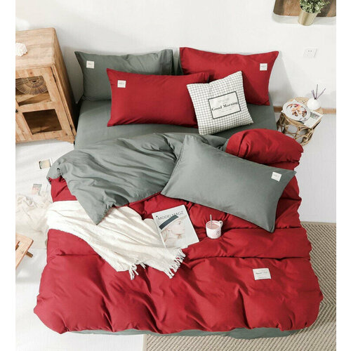 Комплект постельного белья Winni Красно-серый Семейный, Жатка, наволочки 50х70, 70x70
