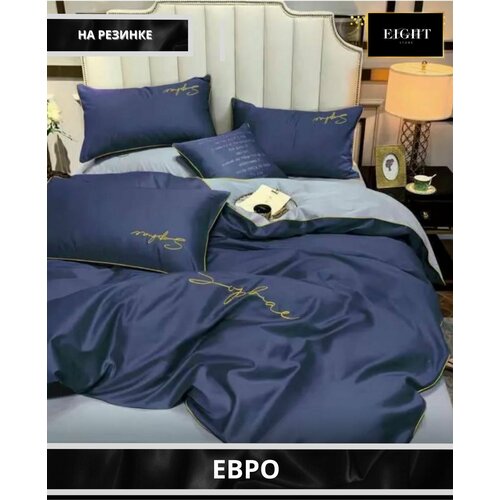 Комплект постельного белья MENCY WINNI Жатка Сине-голубой, Евро с простыней на резинке