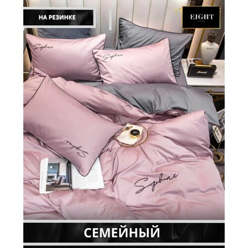 Комплект постельного белья MENCY WINNI Жатка Розово-серый, Семейное с простыней на резинке