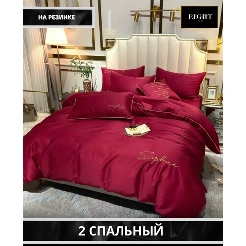 Комплект постельного белья MENCY WINNI Жатка Красный, 2 спальное с простыней на резинке