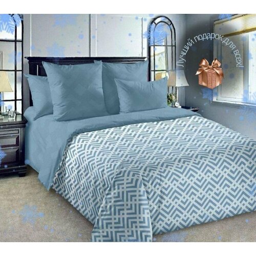 Комплект постельного белья 1,5сп на молнии перкаль Бьерн голубой Подарок на Новый год 2024 для женщин и мужчин
