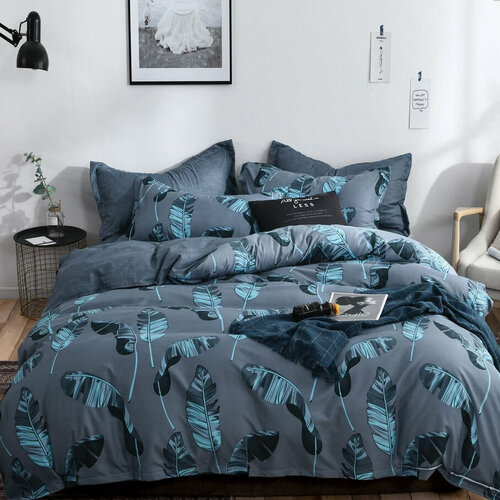 Комплект постельного белья из Поплина Семейный Mency House. 4 наволочки 70x70 и 50x70. Простыня на резинке по кругу. SAYA HOME. Темно-серый